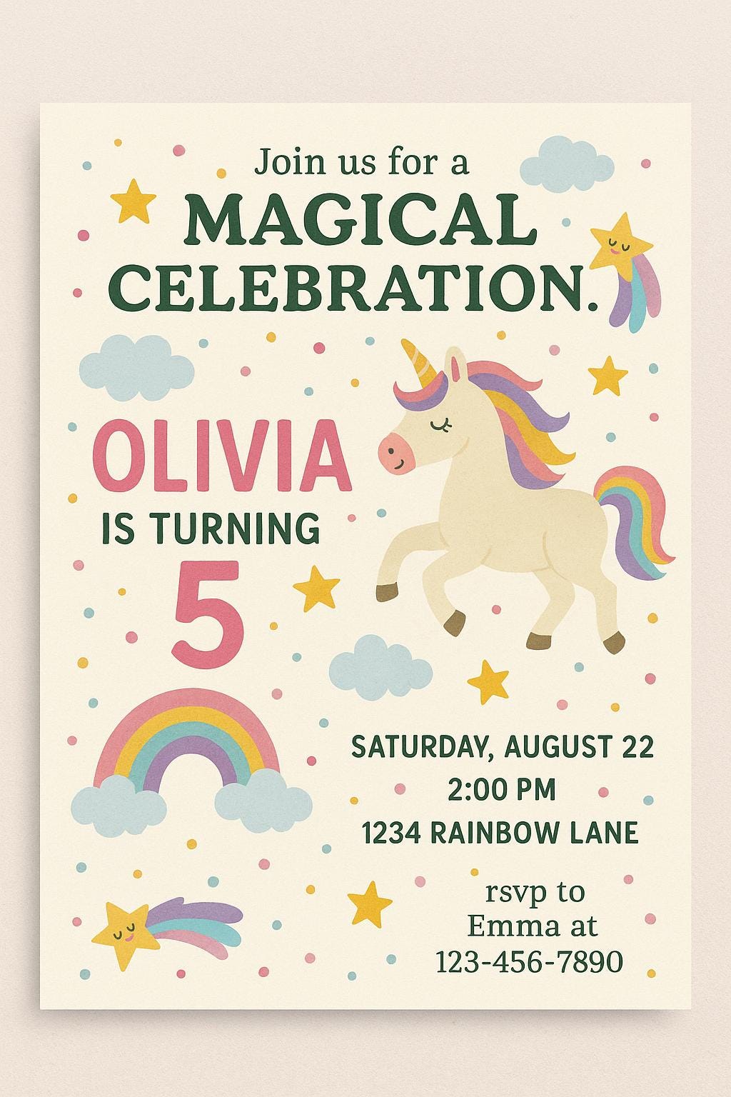 🦄 Magical Unicorn Birthday Invitation | Editable Canva Template | Printable Digital Download